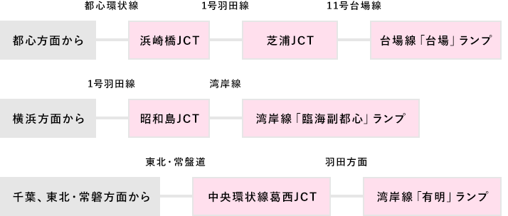 | 森40系統 | JR大森駅東口 | 平和島経由 | 東京テレポート駅 | ダイバーシティ東京 プラザ 徒歩3分 |