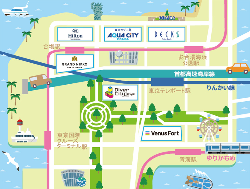 | 台場二丁目 | デックス東京ビーチ 徒歩1分 |